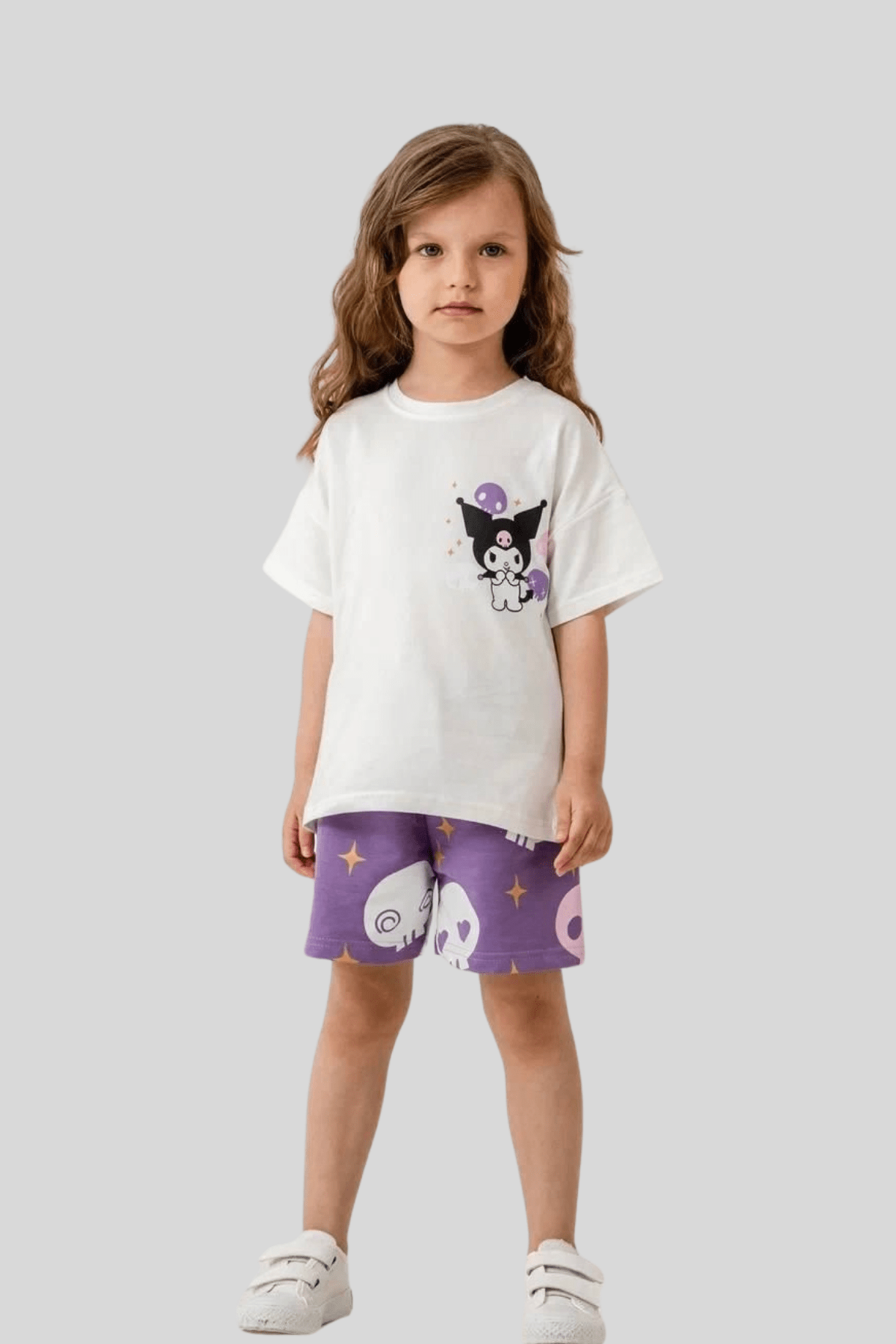 3-10 Yaş Baskılı Kuromi Şortlu Kız Çocuk Takım Mor (STK-2597)