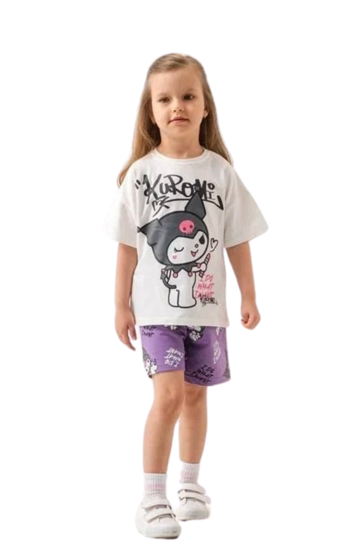 3-10 Yaş Kuromi Şortlu Kız Çocuk Takım Beyaz