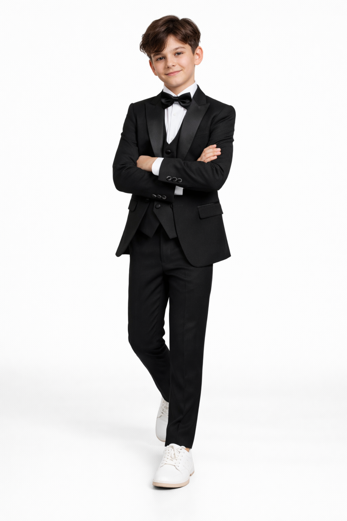 3-14 Yaş Saten Yaka Erkek Çocuk Takım Elbise Mezuniyet Siyah