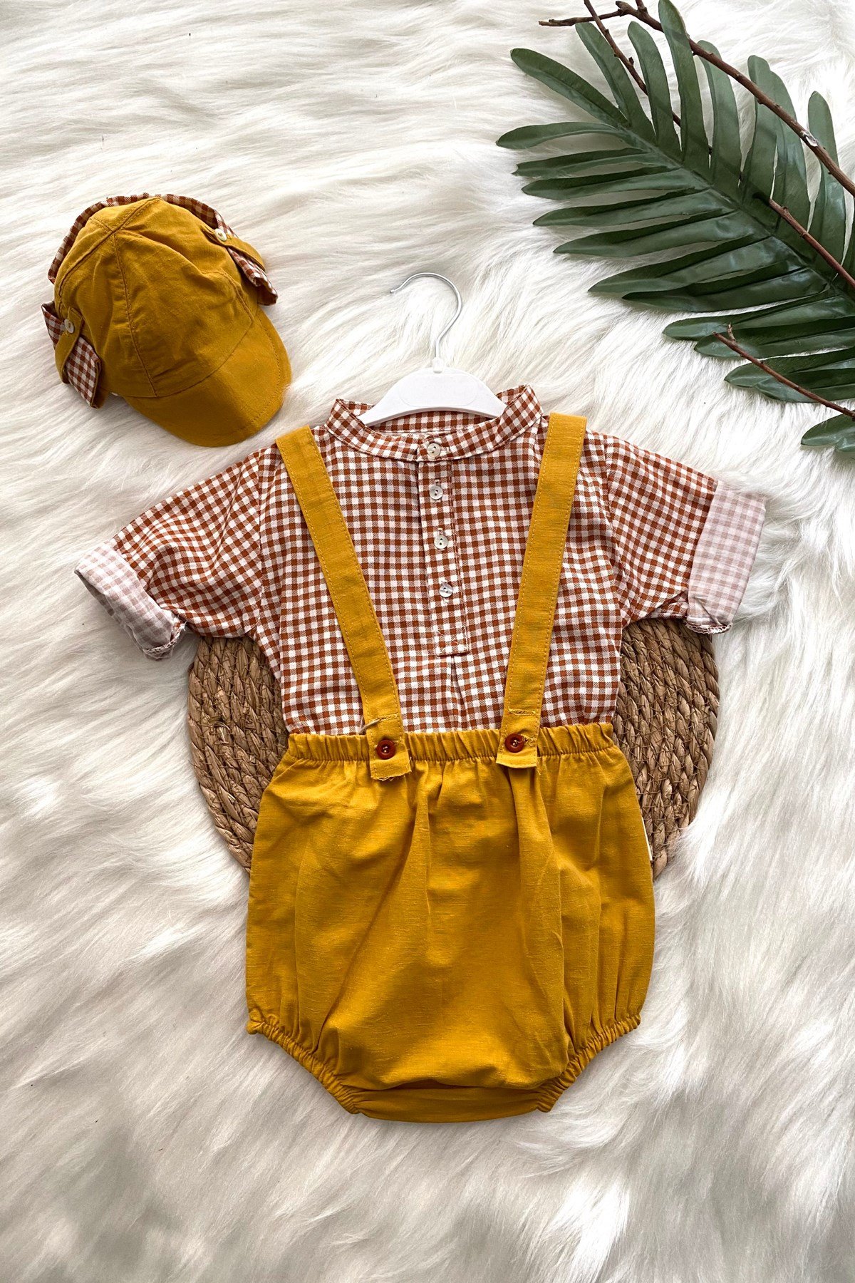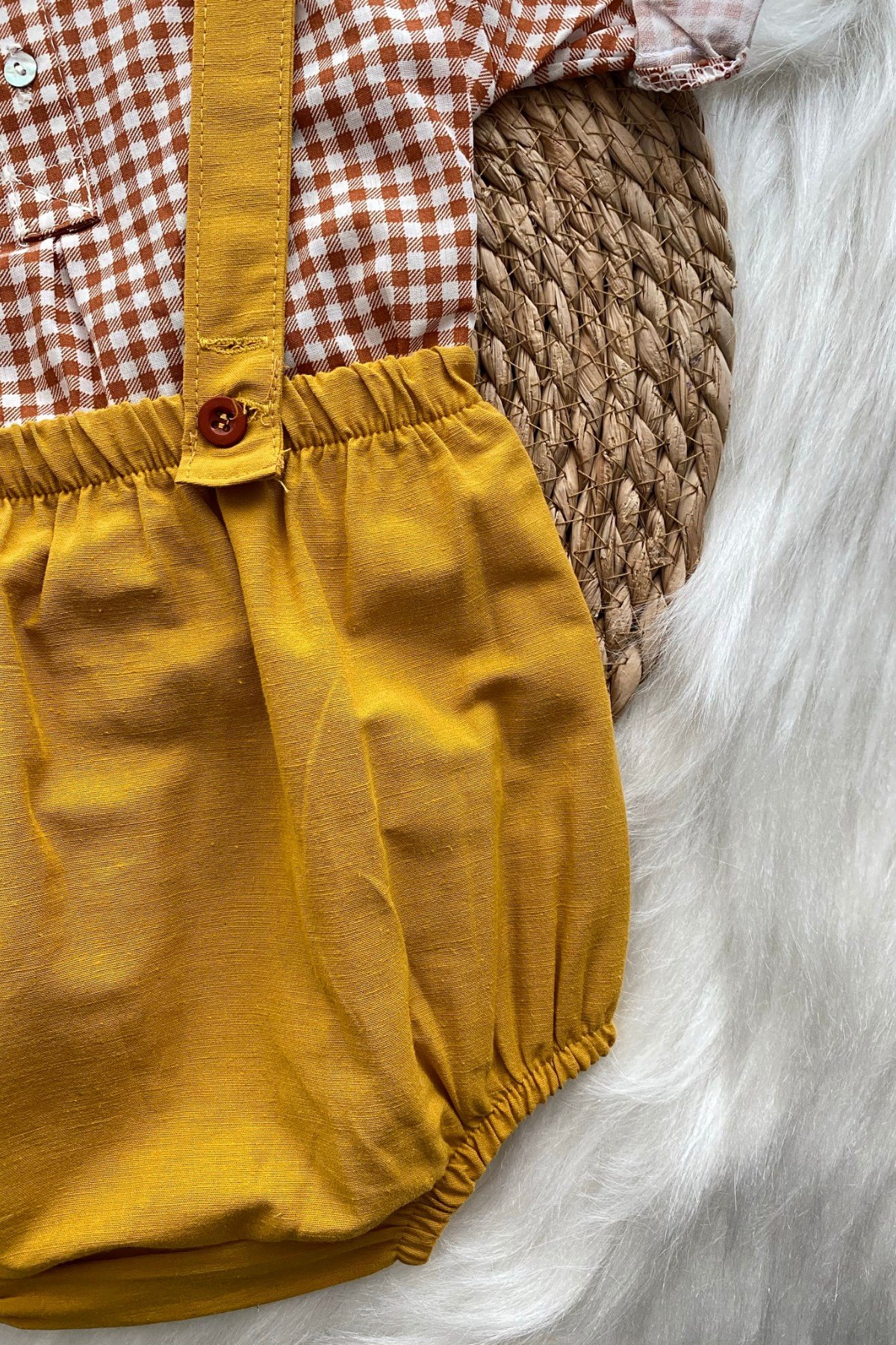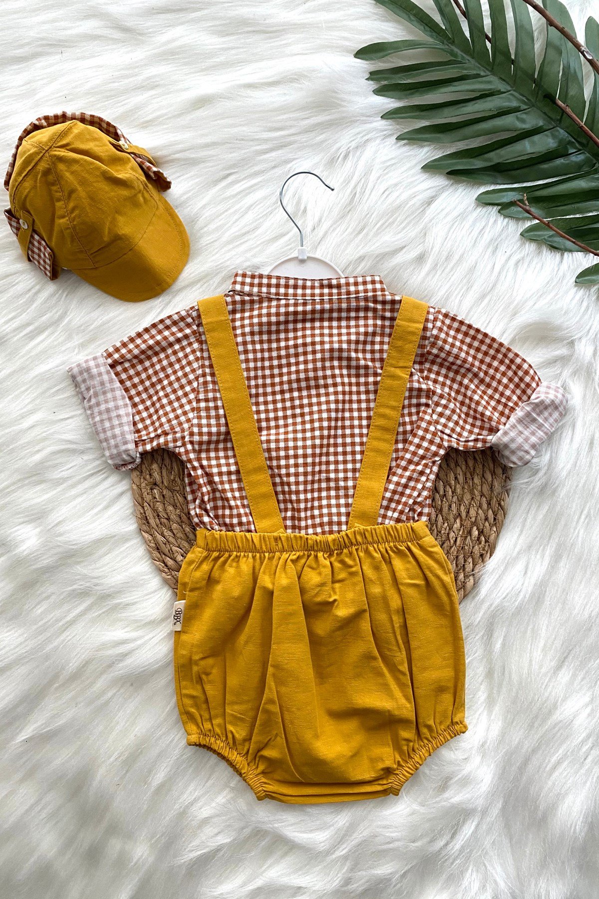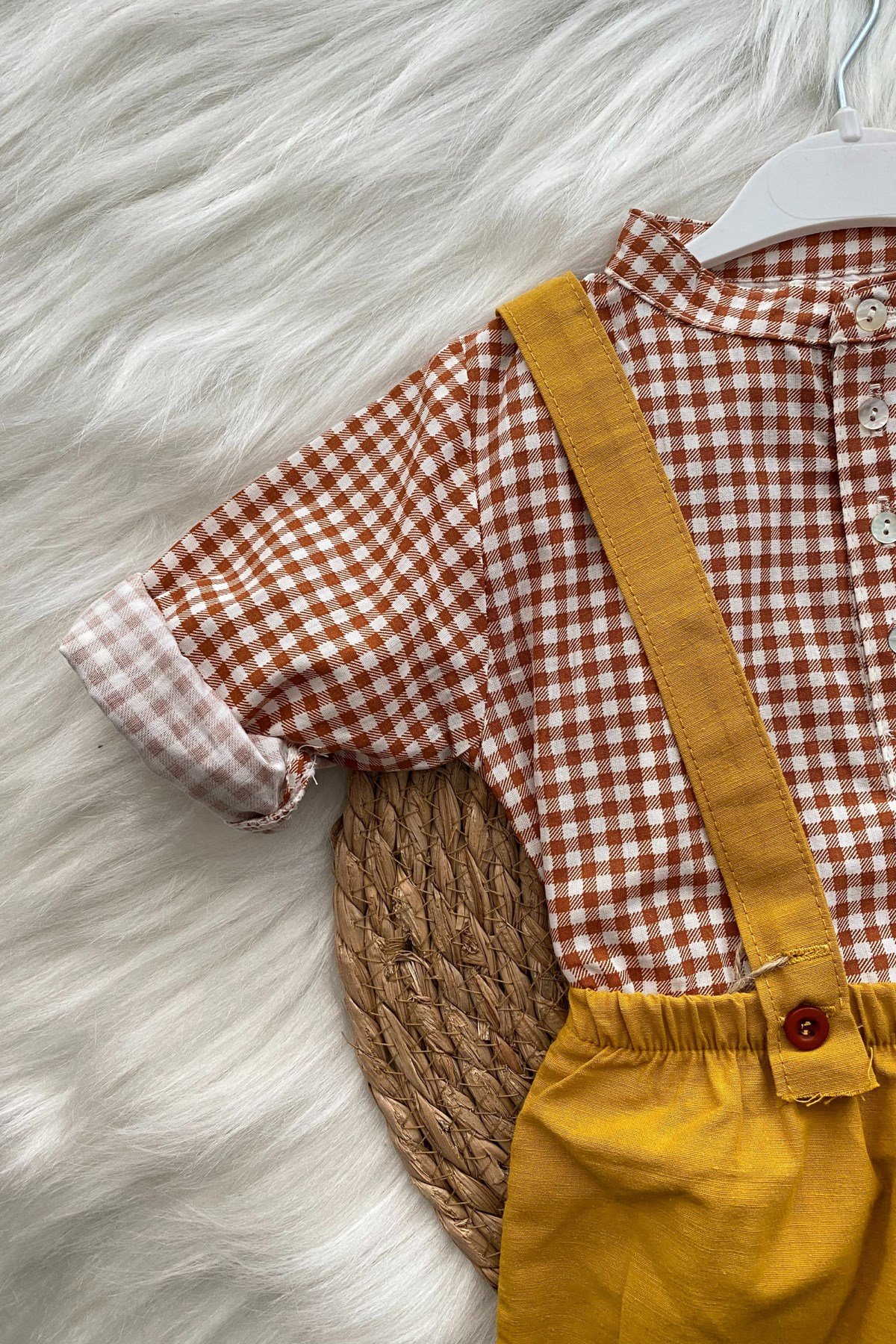 Bereli Gömlekli Erkek Bebek Salopet Takım Hardal (STK-1613)